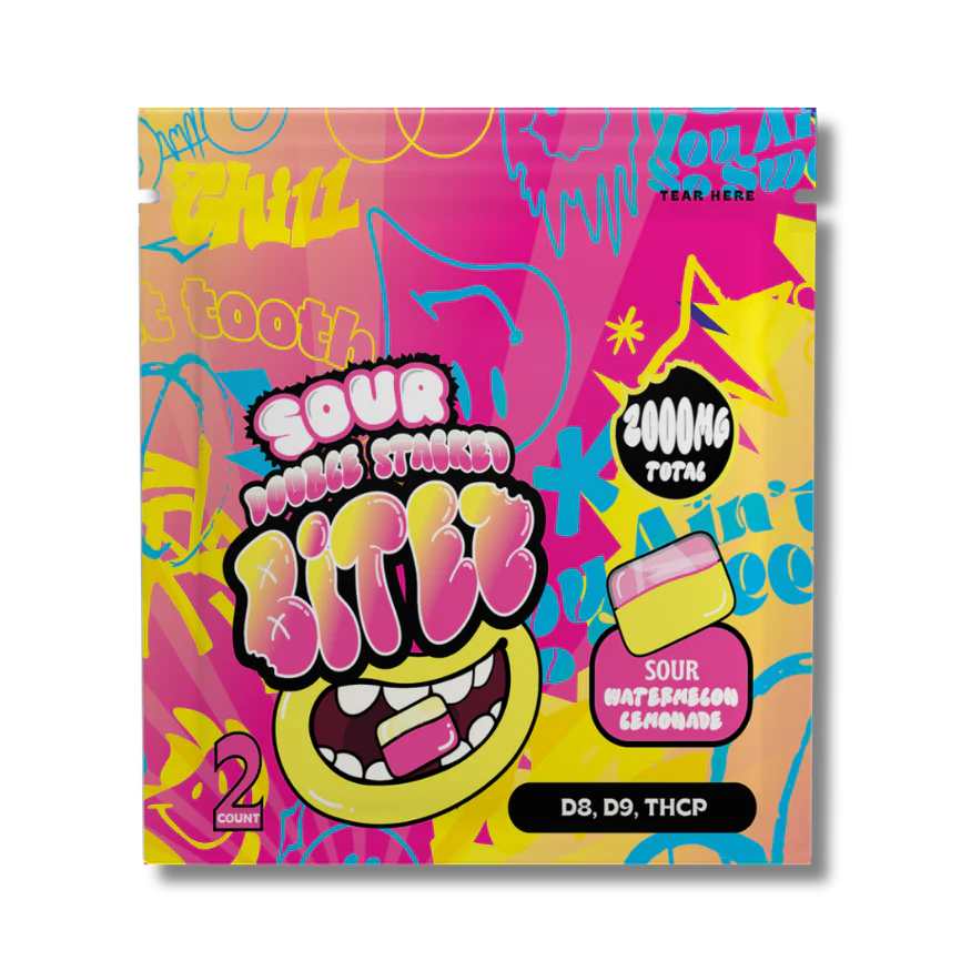 Double Stacked Bitez – D8 + D9 + THCP 2000MG Gummies – Sour Watermelon Lemonade