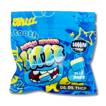 Double Stacked Bitez – Delta-8 + Delta-9 + THCP 2000MG Gummies – Blue Razz