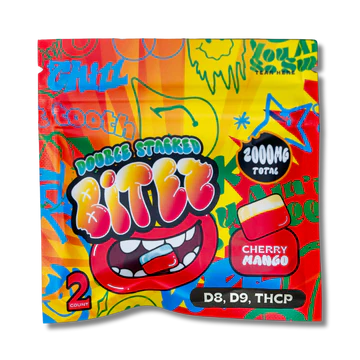 Double Stacked Bitez – Delta-8 + Delta-9 + THCP 2000MG Gummies – Cherry Mango
