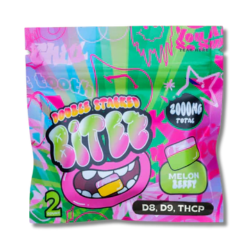 Double Stacked Bitez – Delta-8 + Delta-9 + THCP 2000MG Gummies – Melon Berry