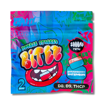 Double Stacked Bitez – Delta-8 + Delta-9 + THCP 2000MG Gummies – Strawberry Watermelon