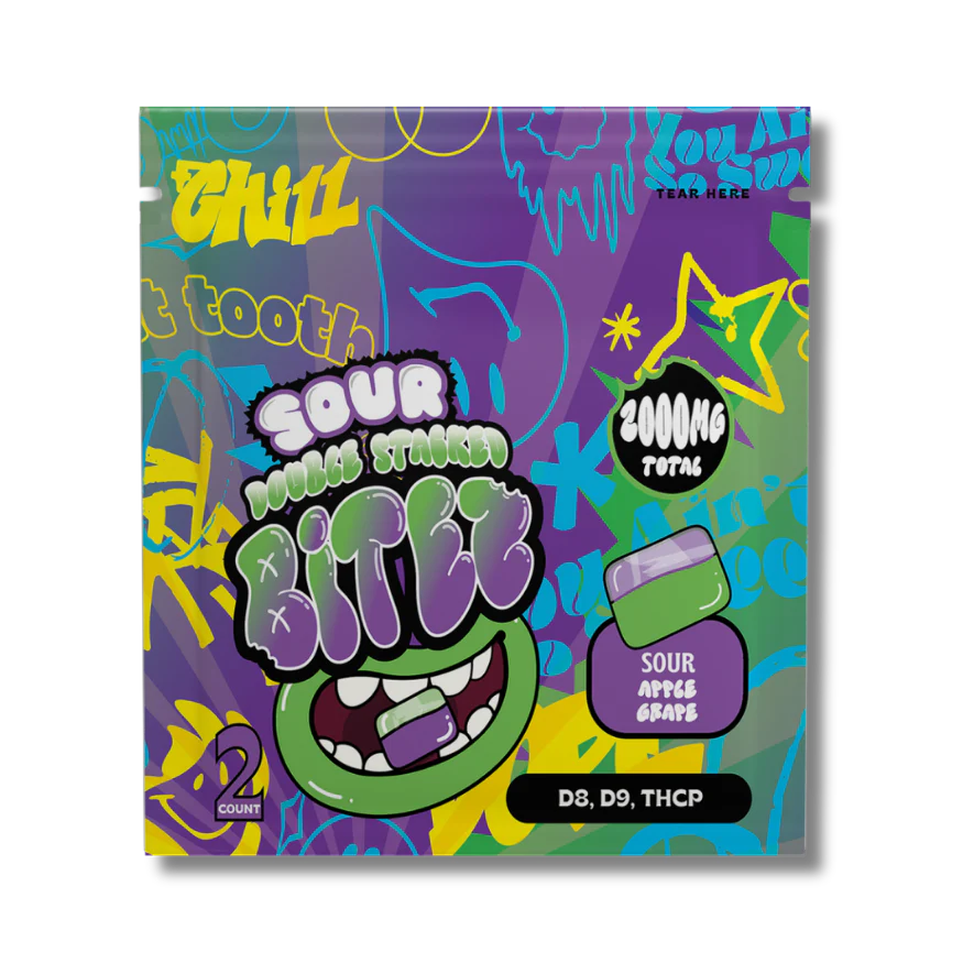 Double Stacked BITEZ – D8 + D9 + THCP 2000MG Gummies – Sour Apple Grape